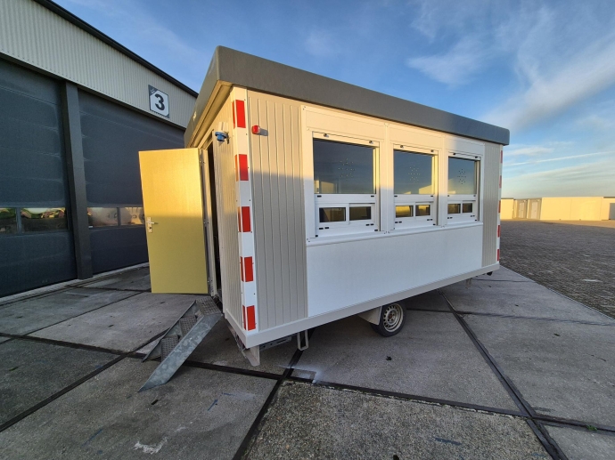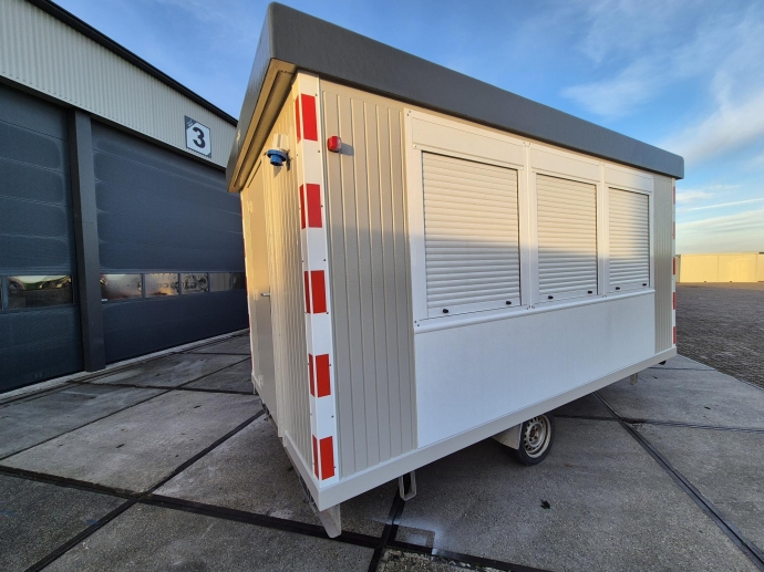 Die Abmessungen sind 6x3m. Ausgestattet mit Toilette und Küchen mit Wasserheizung.