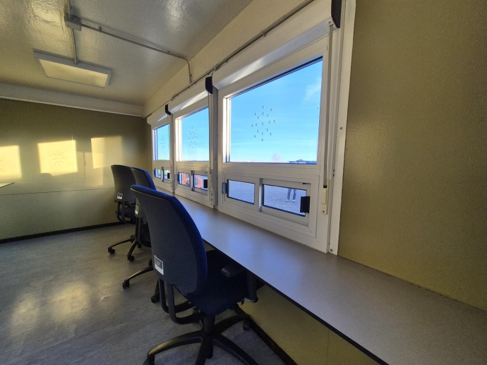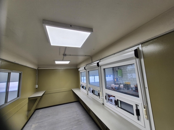 Jeder Container hat, und das ist einzigartig, acht Steckdosen (zwei in jeder Ecke). Die Heizung ist elektrisch durchgeführt, sowie auch die Beleuchtung.