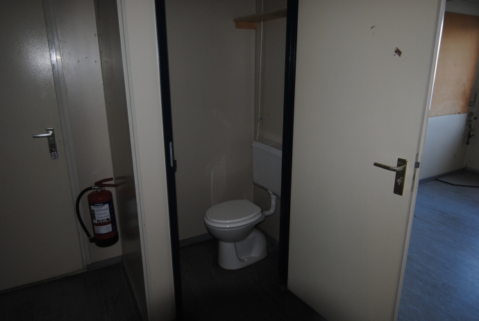 1 sanitaire unit 6x3m. voorzien van toiletten (3 stuks), wasbak 4 stuks, elektrische handdroger en urinoirs (3 stuks) . De accommodatie is compleet uitgevoerd met verlichting, verwarming (elektrisch) en warmwatervoorziening.